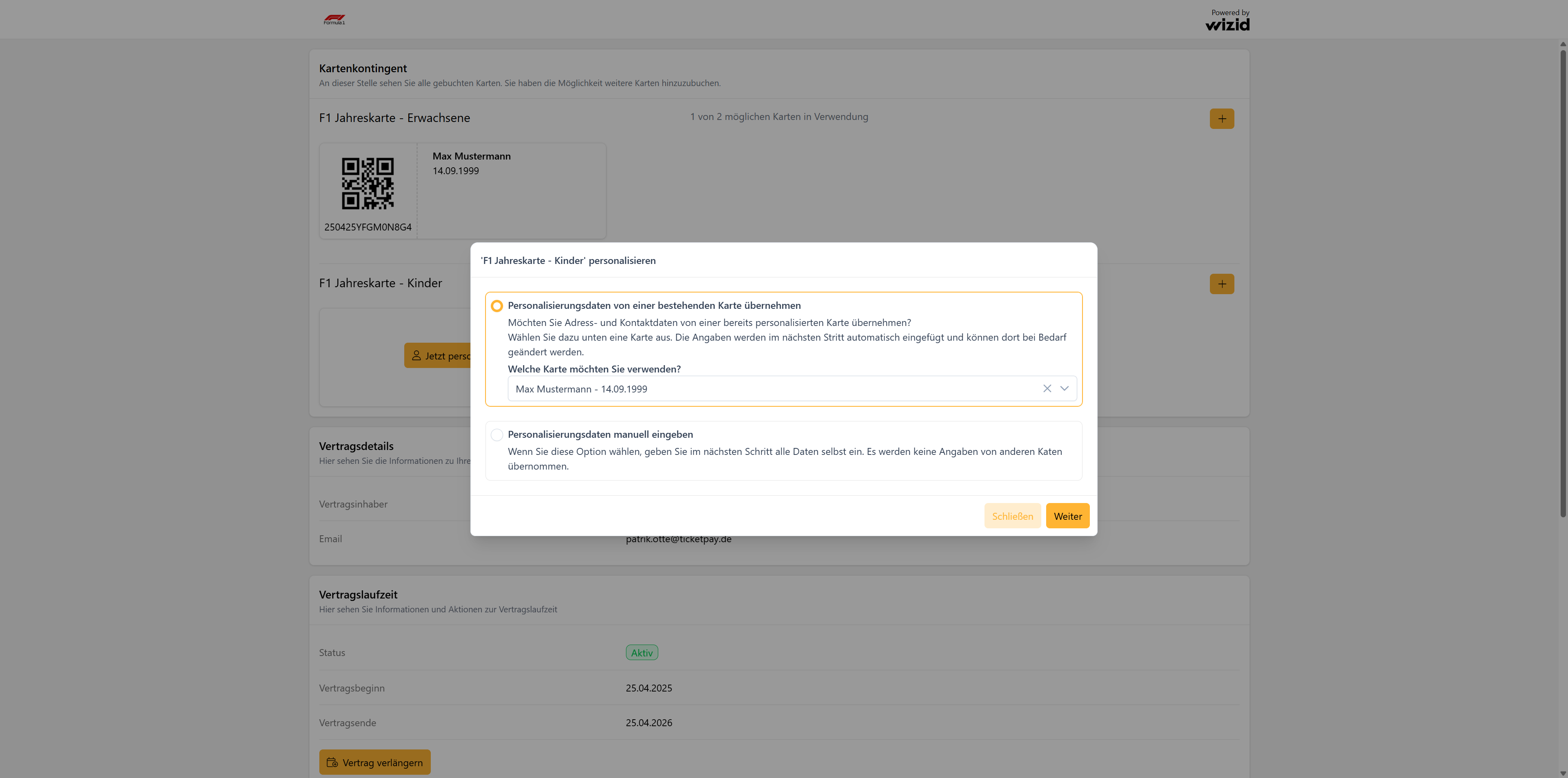 Im Vertragsportal können Sie beziehungsweise ihre Kunden bei Kontingentverträgen ab sofort Adress- und Kontaktdaten bequem von bereits personalisierten Karten übernehmen. Gerade bei Familienjahreskarten – etwa für Kinder – werden häufig die Daten der Eltern verwendet. Dank dieser neuen Funktion entfällt das manuelle Eintippen, was die Pflege von Personalisierungsdaten deutlich vereinfacht und beschleunigt.