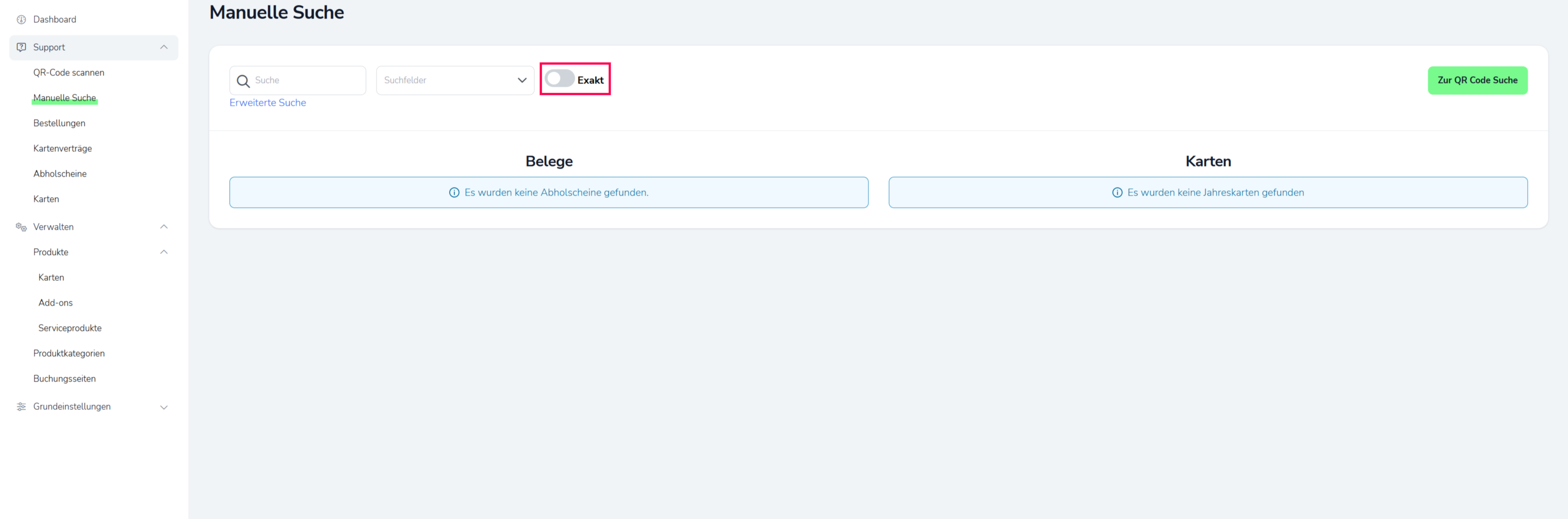 Die manuelle Suche im Card-Modul wurde optimiert: Anstelle einer exakten Übereinstimmung berücksichtigt die Suche nun standardmäßig auch ähnliche Begriffe. Dadurch werden relevante Ergebnisse auch bei Tippfehlern oder unscharfen Eingaben gefunden – ganz ohne zusätzliche Filtereinstellungen. Das beschleunigt die Datensuche spürbar und macht den Arbeitsprozess effizienter und nutzerfreundlicher. Ein Wechsel in die exakte Suche ist bei Bedarf natürlich möglich.